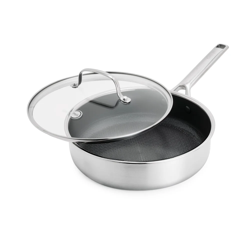 De GreenPan Apex hapjespan 24 cm is een veelzijdige pan die perfect is voor dagelijks gebruik, van het bakken van groenten tot het stoven van sauzen en eenpansgerechten. Dankzij het hoogwaardige triply roestvrij staal – drie lagen met een aluminium kern – warmt de pan snel en gelijkmatig op, waardoor ingrediënten perfect garen zonder aan te branden. De keramische antikleeflaag is volledig PFAS-vrij en biedt een veilige en gezonde manier van koken. Niets blijft plakken, waardoor je met minder vet kunt koken en de pan na gebruik makkelijk schoon te maken is. De Apex hapjespan is geschikt voor alle warmtebronnen, inclusief inductie, en kan ook in de oven tot 200°C worden gebruikt. Zo kun je gerechten moeiteloos van het fornuis in de oven plaatsen om ze verder te garen of warm te houden.