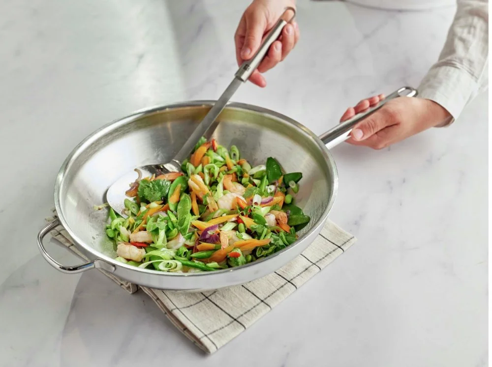 Extra vlot en succesvol roerbakken, stomen, stoven én karamelliseren? De geavanceerde Apollo 7 wok (32 cm) met platte bodem assisteert je feilloos. Het solide 7-lagenmateriaal tot aan de rand verdeelt de warmte goed. De pan wordt heet in het midden en naar de randen toe geleidelijk koeler. Dankzij de platte bodem kan iedereen met deze wok aan de slag en heb je geen aangepaste wokpit nodig. Met Apollo 7 kook je met de absolute top, op alle warmtebronnen en in de oven. Daar zorgt onze exclusieve TriplInduc® technologie zelfs voor een energiebesparing tot 30%. Deze onverwoestbare roestvrijstalen wok reinigt makkelijk en verkleurt niet. Ook niet als je vaak met zure of hele pikante woksauzen aan de slag gaat. Dankzij de unieke Silvinox® technologie blijft je wok schitteren. De stevige, gelaste steel ligt goed in de hand en blijft lang koel. Vuil, vet en bacteriën krijgen geen kans om zich hier te nestelen. Deze grote maat heeft een tegengreep die de wok nog makkelijker hanteerbaar maakt. Vertrouw met een gerust hart op deze parel uit de Apollo 7 serie.