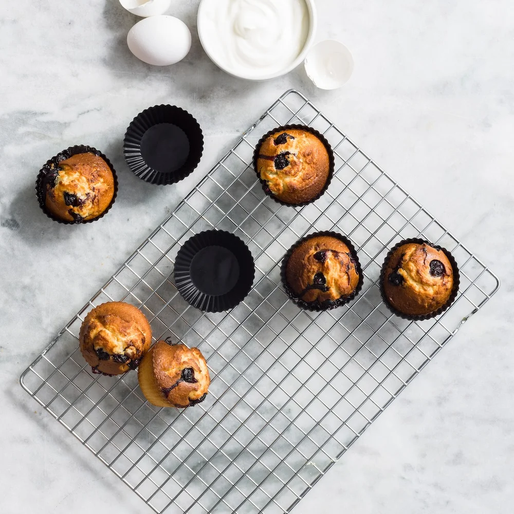 De quiche- en pizzavorm en de bakvorm zijn voorzien van een geavanceerde PFAS-vrije keramische antiaanbaklaag. Dit zorgt ervoor dat je gerechten moeiteloos uit de vormen komen en dat je gezonder kunt bakken zonder extra vetstoffen. De muffinvormen zijn gemaakt van gladde silicone, wat niet alleen bijdraagt aan een eenvoudige lossing van je baksels, maar ook aan een gelijkmatige warmteverdeling voor perfecte muffins elke keer weer.
