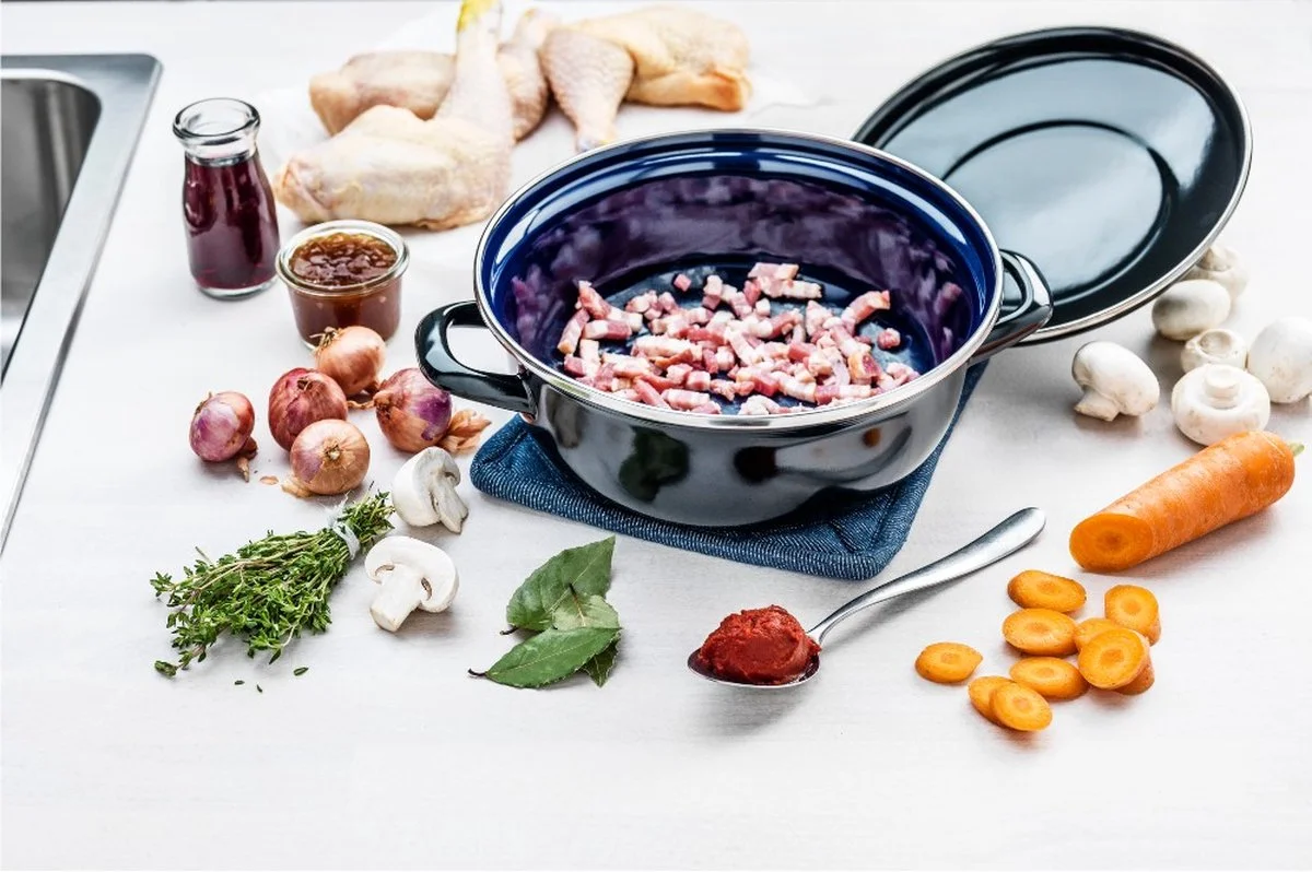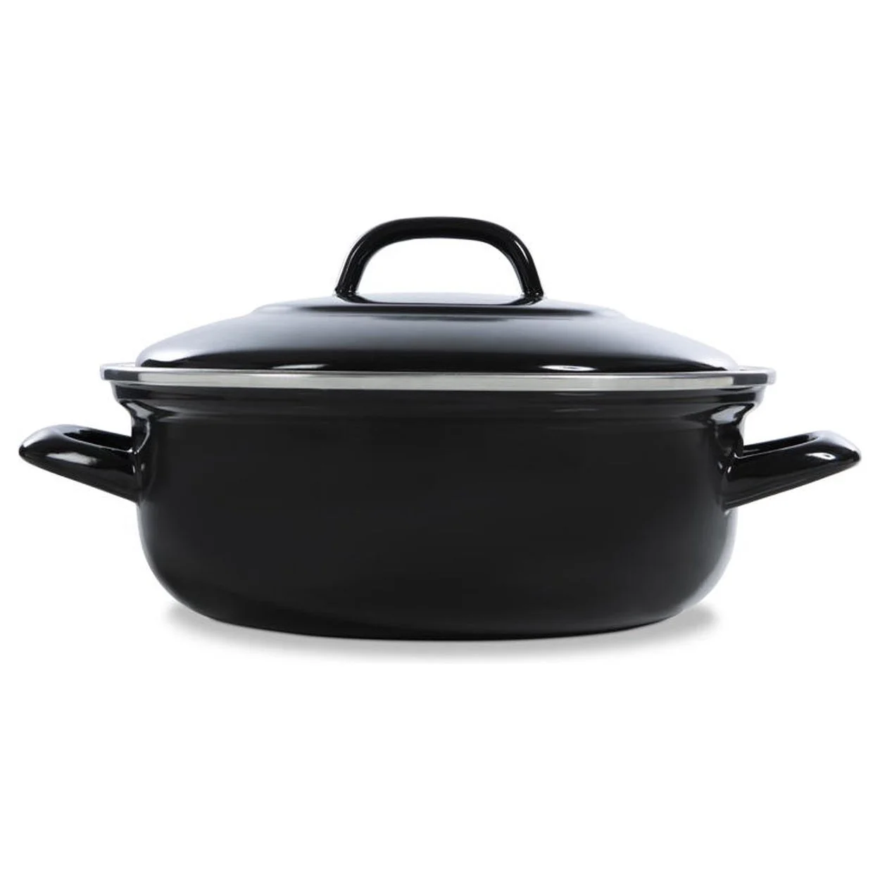 Met de BK Fortalit Braadpan 28 cm in zwart haal je een echte klassieker in huis voor bakken en braden. Deze braadpan is gemaakt van geëmailleerd staal, wat bekend staat om zijn sterke en slijtvaste karakter. Daardoor gaat de pan heel lang mee, ook bij intensief gebruik. De binnenkant is glad en geëmailleerd en voldoet aan hoge hygiëne en voedingsnormen. Dat merk je meteen na het koken: de pan wordt makkelijker schoon en neemt geen vuil, geur of vet op. Ideaal als je graag stoofgerechten, suddervlees of groenten langzaam laat garen.