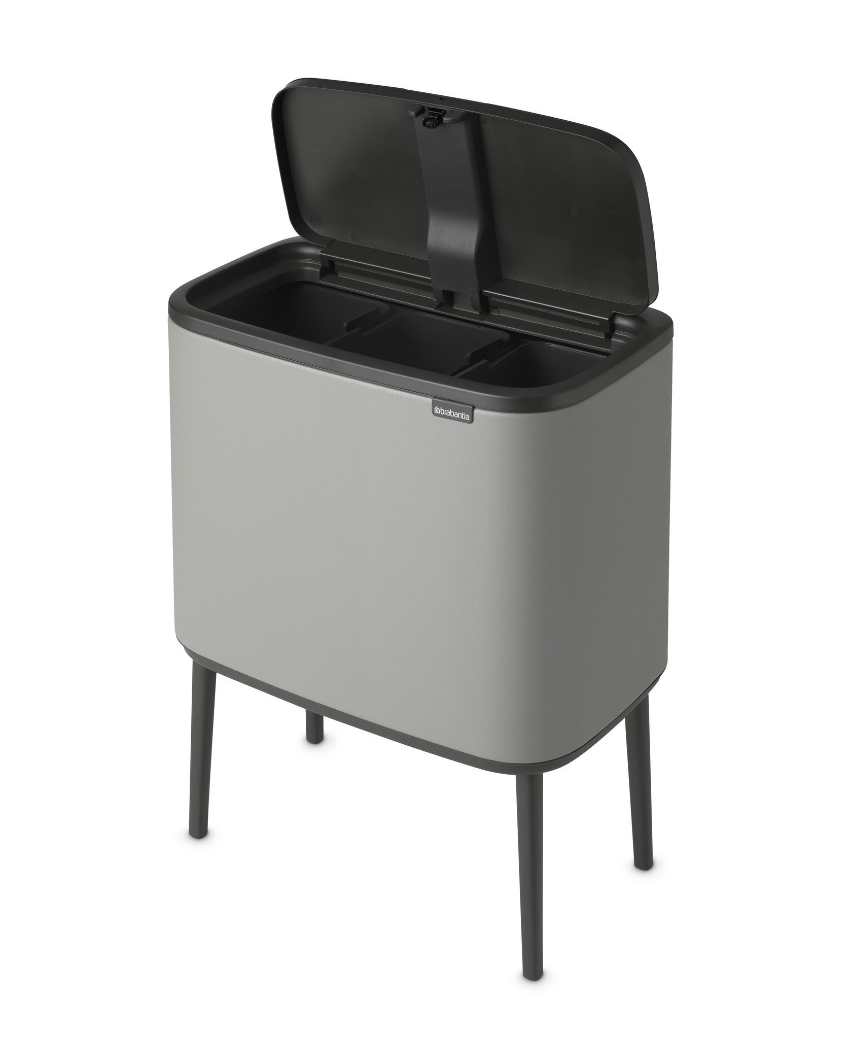 De Brabantia Bo Touch Bin afvalemmer van 3 x 11 liter in de kleur Mineral Concrete Grey is een elegante en praktische oplossing voor het scheiden van afval in huis. Met drie afzonderlijke binnenemmers van elk 11 liter is deze afvalemmer ideaal voor het gescheiden inzamelen van bijvoorbeeld restafval, gft en plastic. De uitneembare kunststof binnenemmers maken het legen en schoonmaken eenvoudig, terwijl het reukdichte deksel nare geurtjes effectief binnenhoudt.