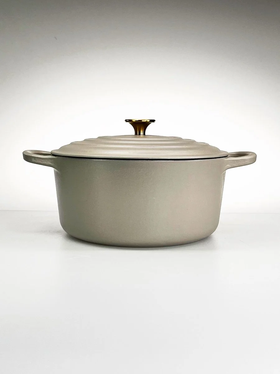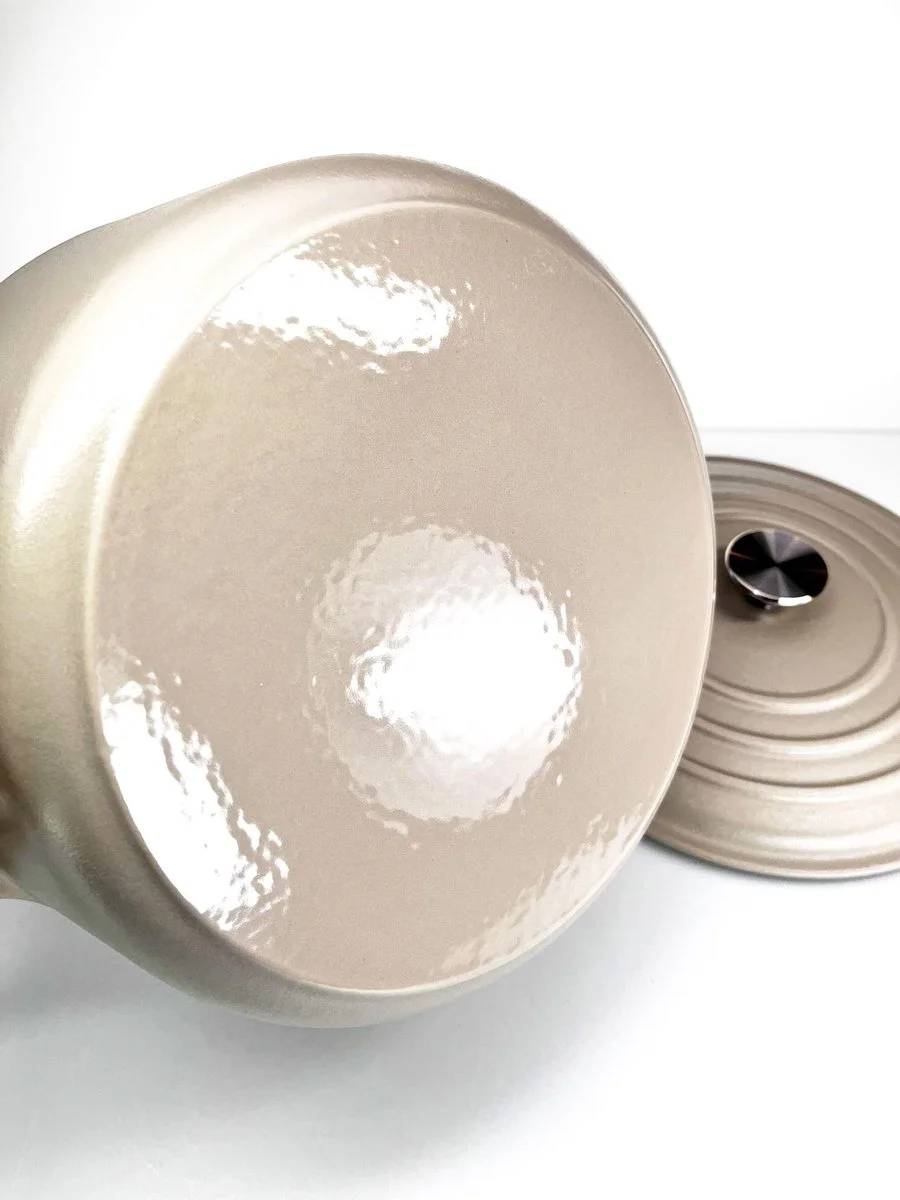 De Relance braadpan van gietijzer 26 cm in mat light-sandy beach is een stevige pan voor langzaam garen met veel smaak. Met een inhoud van 4,5 liter en een hoogte van 12 cm is hij ideaal voor stoofgerechten, soepen en een mooie braadschotel voor het hele gezin. De geëmailleerde binnenzijde helpt tegen aankoeken en maakt schoonmaken een stuk makkelijker.