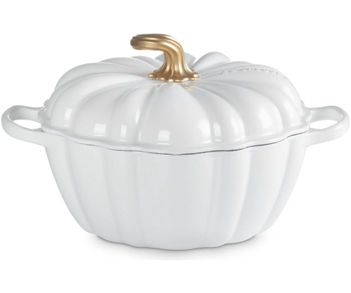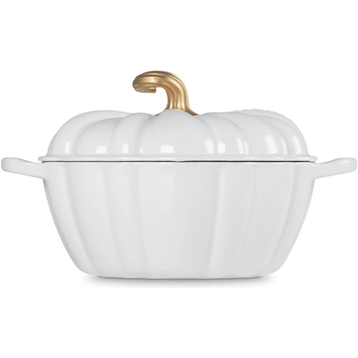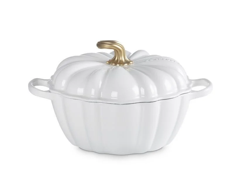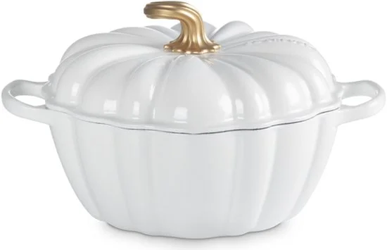 De Le Creuset Braadpan Pompoen Wit 24 cm is niet alleen een functionele pan, maar ook een echte blikvanger in de keuken. Met zijn unieke pompoenvorm voegt deze pan een speels en stijlvol element toe aan je kookgerei. De pan is perfect voor het bereiden van stoofschotels, soepen en braadstukken, met een inhoud van 3.7 liter.
