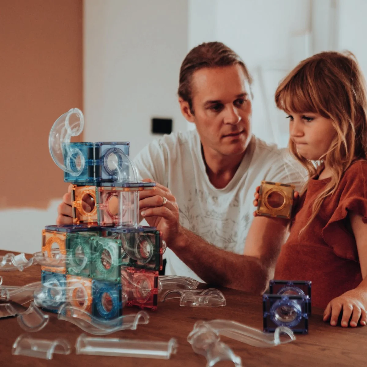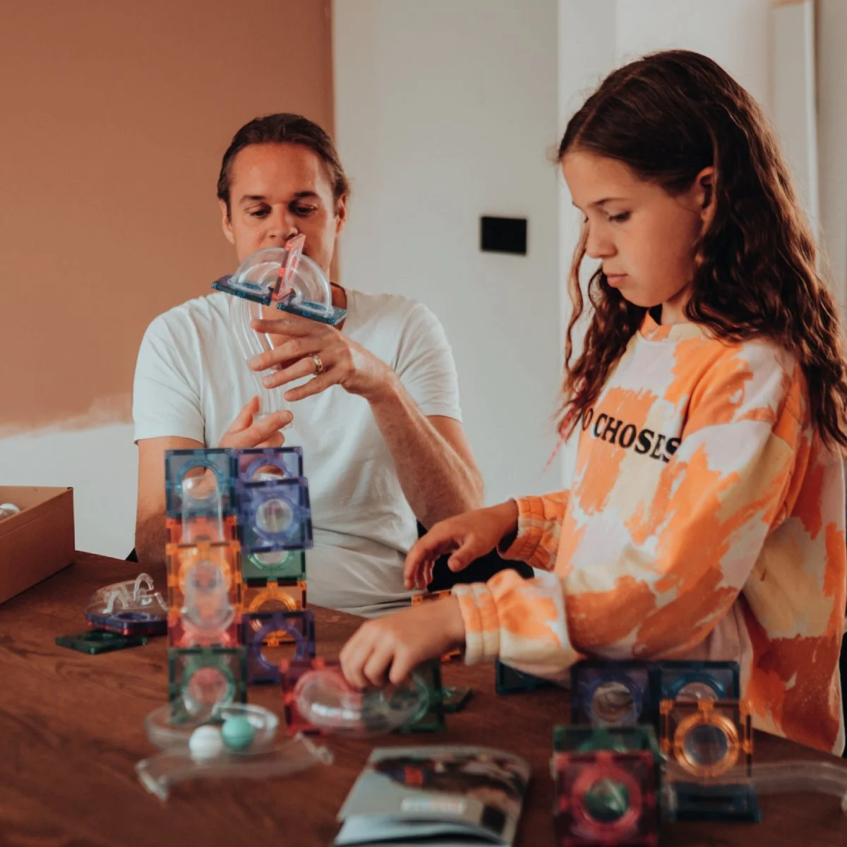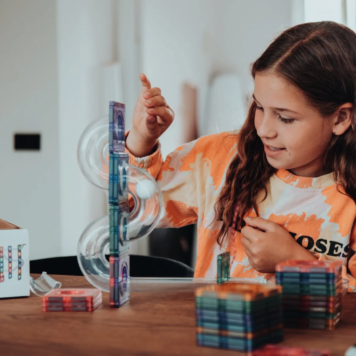 Nog beter! Bouw tegen de radiator of andere magnetische oppervlakken en maak een verticaal kunstwerk. Of teken allerlei letters en cijfers met uitwisbare stiften en ga creatief aan de slag met de Cleverclixx Magnetische Bouwsets.