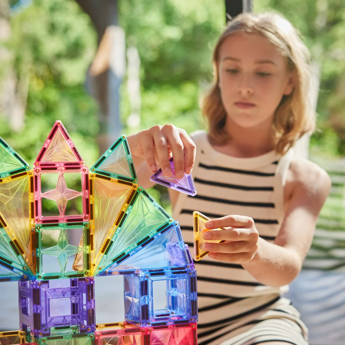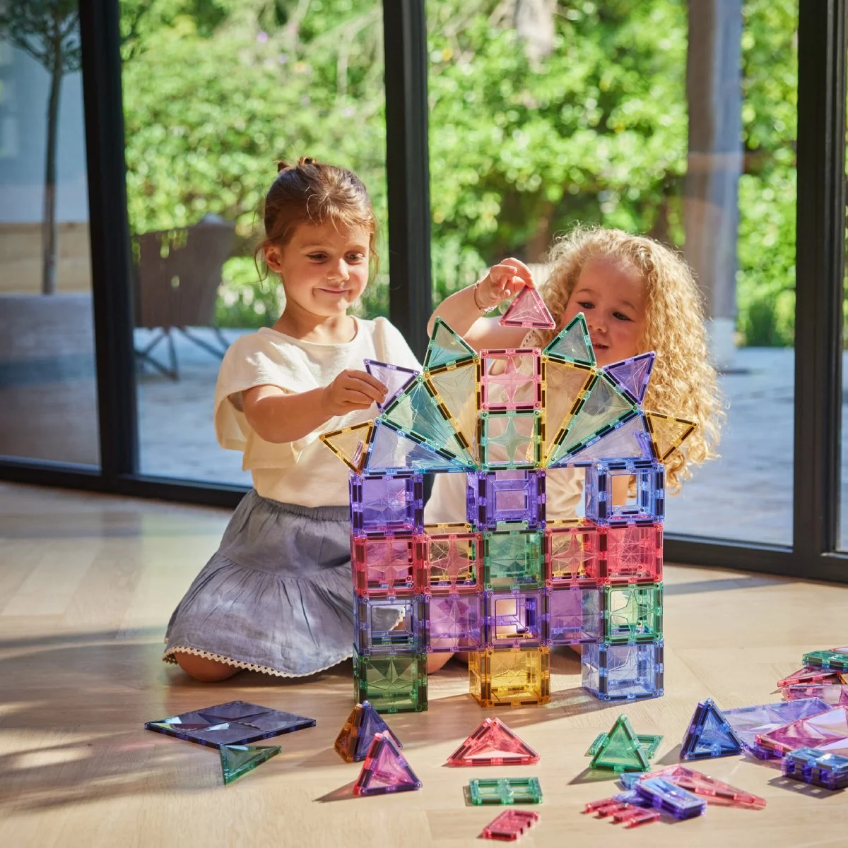 Nog beter! Bouw tegen de radiator of andere magnetische oppervlakken en maak een verticaal kunstwerk. Of teken allerlei letters en cijfers met uitwisbare stiften en ga creatief aan de slag met de Cleverclixx Magnetische Bouwsets.
