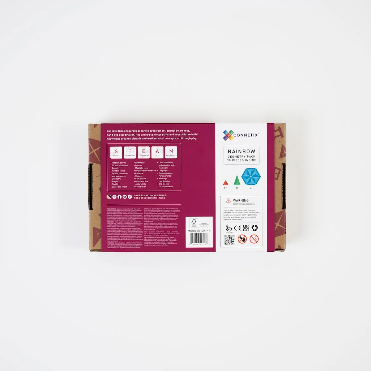 Omdat CONNETIX met je kind meegroeit, blijft het speelgoed uitdagend naarmate hun spel ingewikkelder wordt en hun fantasie zich verder ontwikkelt. De Geometry Pack is ideaal om een eerste stap te zetten in de wereld van magnetisch speelgoed of om bestaande sets uit te breiden. Combineer de 30-delige set bijvoorbeeld met de CONNETIX Creative Pack van 102 delen of de 42-delige Rainbow Square Pack om nog meer bouwmogelijkheden te ontdekken en het spel naar een hoger niveau te tillen. CONNETIX staat bekend om de hoge kwaliteit en duurzaamheid, waardoor kinderen jarenlang veilig en met veel plezier kunnen spelen.