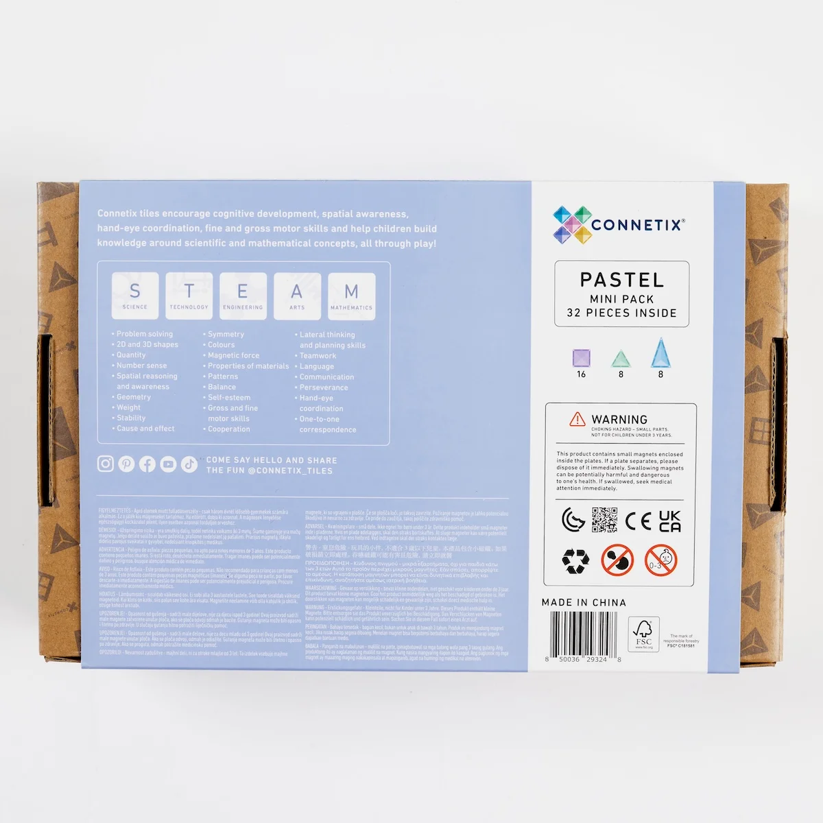 Ontdek de betoverende wereld van creativiteit en leren met het Connetix Tiles Pastel Mini Pack - een compacte, maar krachtige set van 32 stuks die solo of gezamenlijk spelen naar nieuwe hoogten tilt.