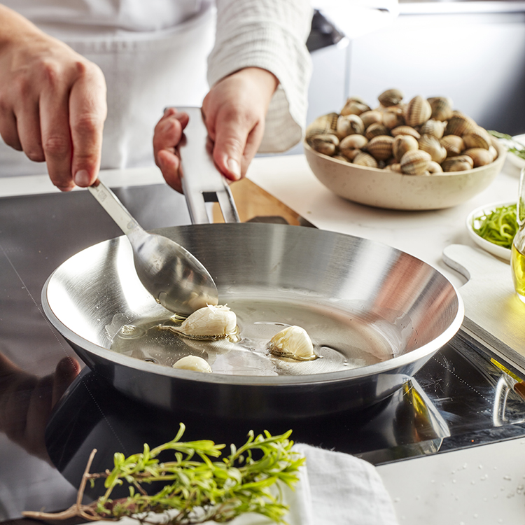 De Demeyere John Pawson 7 koekenpan is gemaakt voor wie strak design en top prestaties wil. Het minimalistische ontwerp van John Pawson past in elke keuken en voelt luxe aan. De pan is gemaakt van meerdere lagen tot aan de rand. Daardoor warmt hij snel en gelijkmatig op en blijft de temperatuur stabiel, ook op een lage stand. Dankzij de TriplInduc technologie werk je extra efficiënt op inductie en houd je perfecte controle over de hitte. De roestvrijstalen, gelaste greep ligt stevig in de hand en is extra hygiënisch. De koekenpan is geschikt voor alle kookplaten en kan ook in de oven, ideaal voor aanbraden en daarna doorgaren.