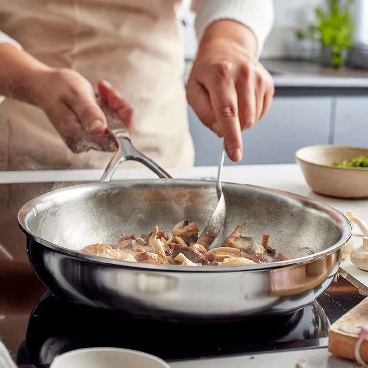 Met Multiline 7 ga je aan de slag als een volleerde chef. Het is een solide roestvrijstalen pan uit ons topsegment, maar lichter in gewicht dan Proline 7. De Multine 7 koekenpan is volledig vervaardigd uit ons exclusieve 7-lagenmateriaal. Hierdoor verdeelt de warmte zich heel snel en gelijkmatig. Dorade, vegetarische aperitiefballetjes, kalkoenfilets, ... je bakt ze stuk voor stuk zoals het hoort. Als basis voor een passende saus kan je de kleine aanbaksels deglaceren. Ook aardappeltjes geef je in een-twee-drie een heerlijk krokant jasje. Als je dat wenst – uit gezondheids- of andere overwegingen – kan je zelfs vlees bakken zonder olie of boter toe te voegen. Deze pan van 20 cm ligt goed in de hand, presteert geweldig op alle fornuizen en is niet te kloppen op inductie. Door de exclusieve TriplInduc® technologie kook je met Multiline 7 op inductie efficiënter en met een optimale controle over de temperatuur. Zo bespaar je hier tot 30% energie. Zodra de pan voldoende opgewarmd is, mag het fornuis een paar standen lager, ze houdt de juiste baktemperatuur. Sauzen en vloeistoffen giet je makkelijk over zonder morsen, daar zorgt de speciale schenkrand voor. Durf je al eens met mes en vork in een pan zitten? Geen stress, deze robuuste hulp kan er tegen. Dankzij onze unieke lastechnologie is de steel extra stevig bevestigd en uiterst hygiënisch. Deze Multiline 7 pan reinigt als vanzelf en blijft blinken, dankzij de Silvinox® technologie. Ze kan ook probleemloos de vaatwasser in. Goed voor blijvend bakplezier. Multiline 7 assisteert je tiptop, jaar na jaar.
