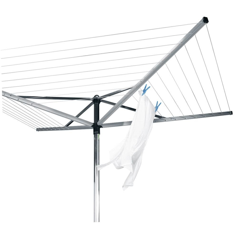 Deze Brabantia Topspinner heeft 50 meter drooglengte en wordt geleverd met een grondanker.