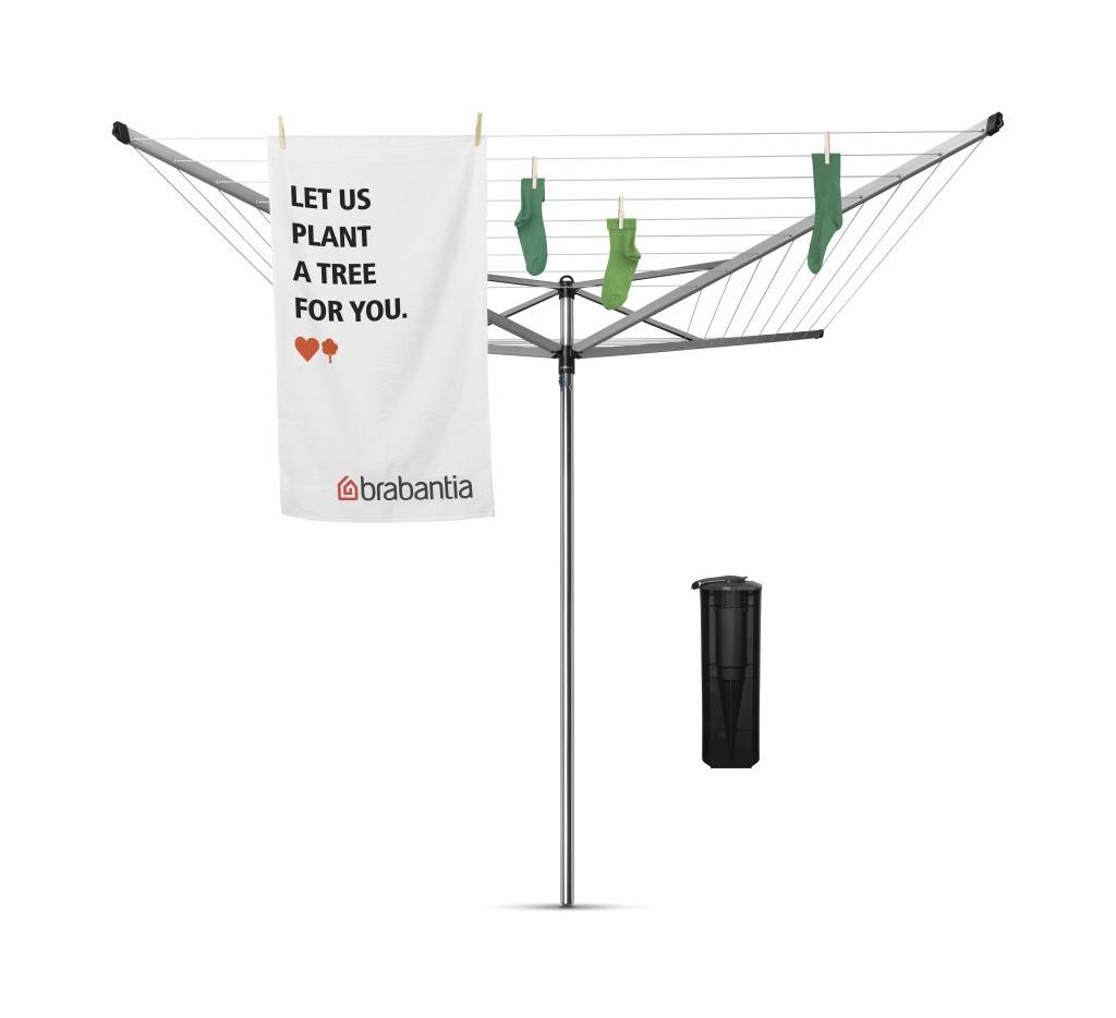 Buiten drogen is beter voor het milieu én uw portemonnee. Buiten uw was drogen geeft uw wasgoed een heerlijk frisse geur. Nog een voordeel is dat uw kleren langer mooi blijven. En buiten drogen kost niets, want de zon is gratis! En alsof dat nog niet genoeg zou zijn: Brabantia en WeForest planten samen een boom voor elke droogmolen die u koopt.