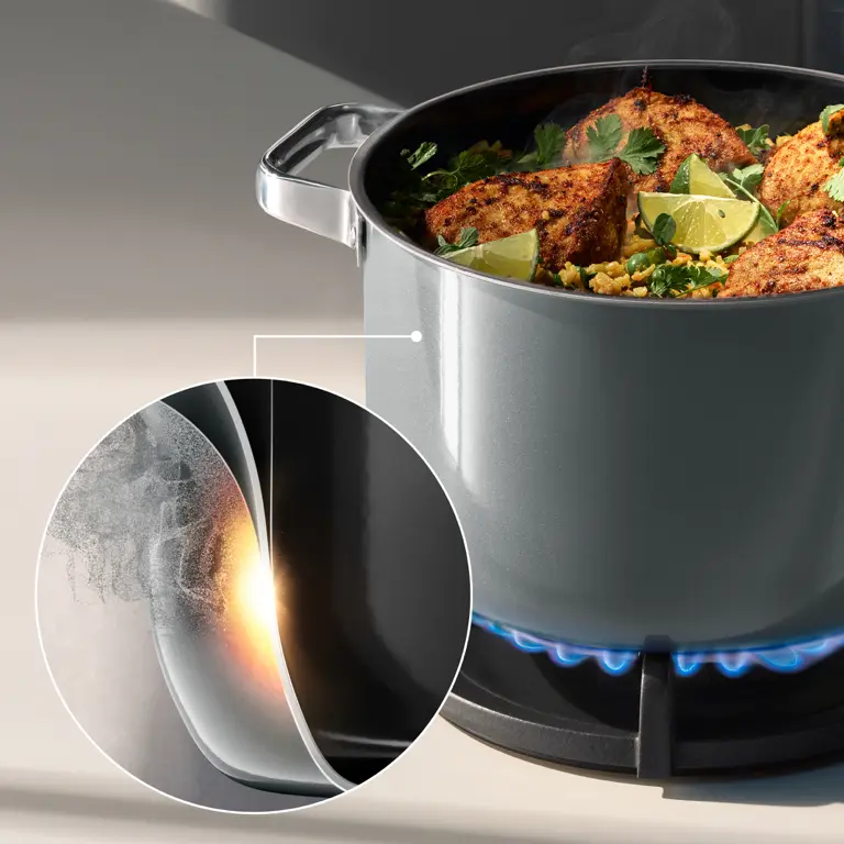 Tijdens het koken merk je meteen hoe fijn deze pannen werken. Ze warmen snel op en bereiken vlot de juiste temperatuur, zodat je meer controle hebt over het kookproces. De holle grepen beperken de warmteoverdracht, waardoor de handgrepen langer koel aanvoelen en je prettiger kunt koken. De glazen deksels maken het makkelijk om je gerecht in de gaten te houden, zonder warmte te verliezen. Deze pannenset is gemaakt in Duitsland en je krijgt 30 jaar garantie, zodat je jarenlang zorgeloos kunt blijven koken.