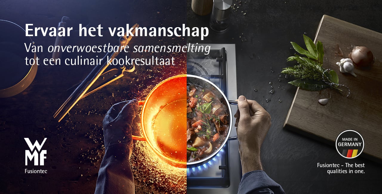 Fusiontec is bij uitstek Made in Germany. Het unieke bak- en hardingsproces versmelt een reeks keramische lagen op een stalen kern, waardoor een veerkrachtig materiaal ontstaat met een niet-poreus afgedicht oppervlak. Deze combinatie zorgt ervoor dat de eersteklas gebruikseigenschappen van Fusiontec kookgerei en koekenpannen opvallen: hun gladde oppervlak is snij- en slijtvast, perfect geschikt voor vetarm koken en gemakkelijk schoon te maken. Het extreem onderhoudsarme en bijna onverwoestbare materiaal is ook visueel aantrekkelijk. Het ziet er elegant, trendy en modern uit. Met andere woorden, zo uitstekend als het werkelijk is.