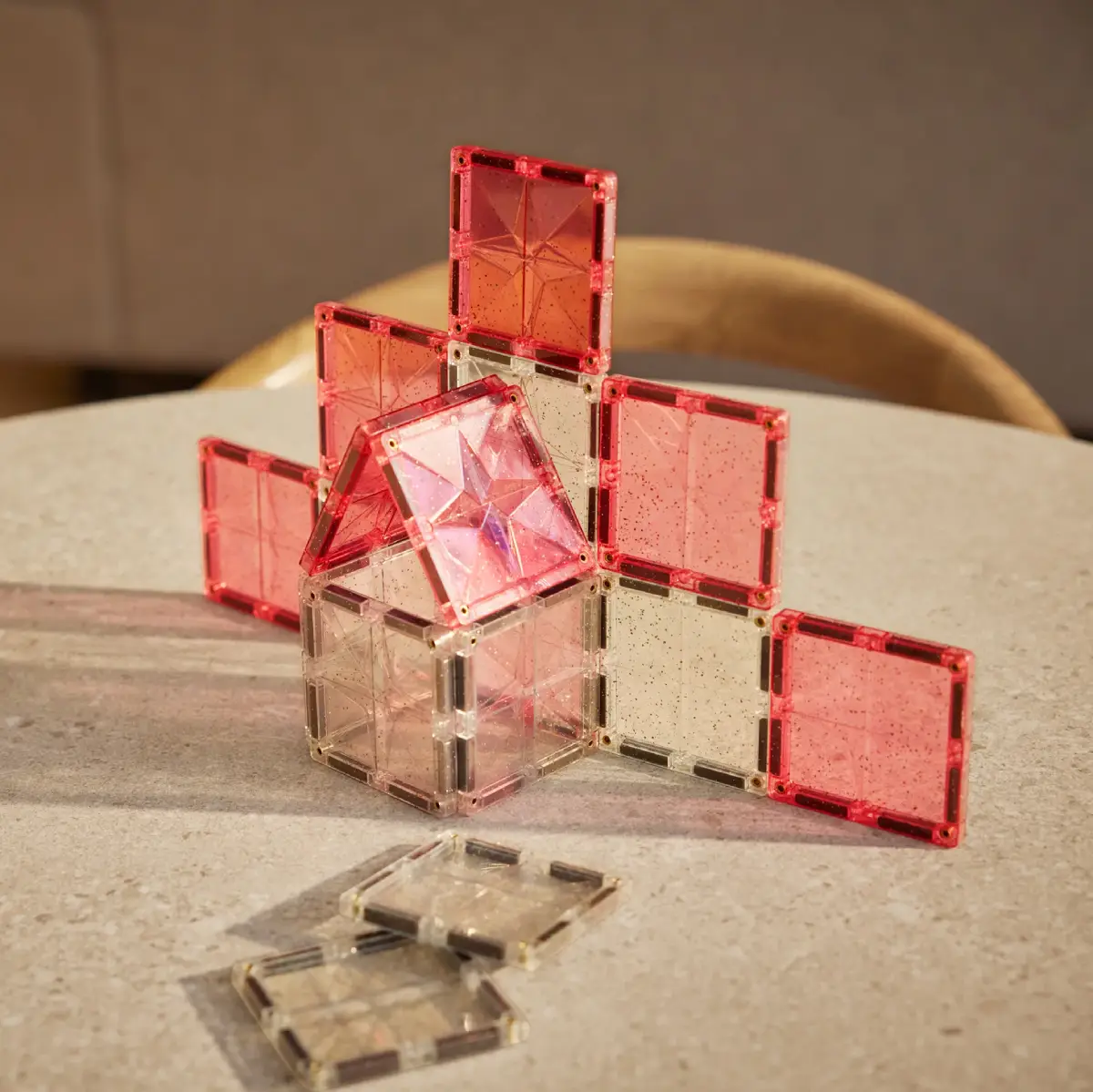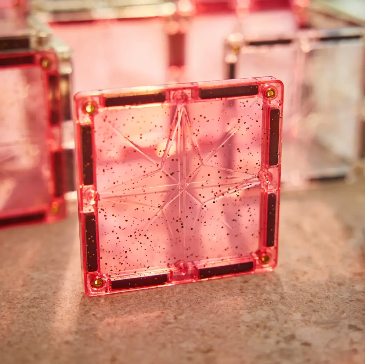 Glitter Tiles Pack Transparant & Pink 16-delig