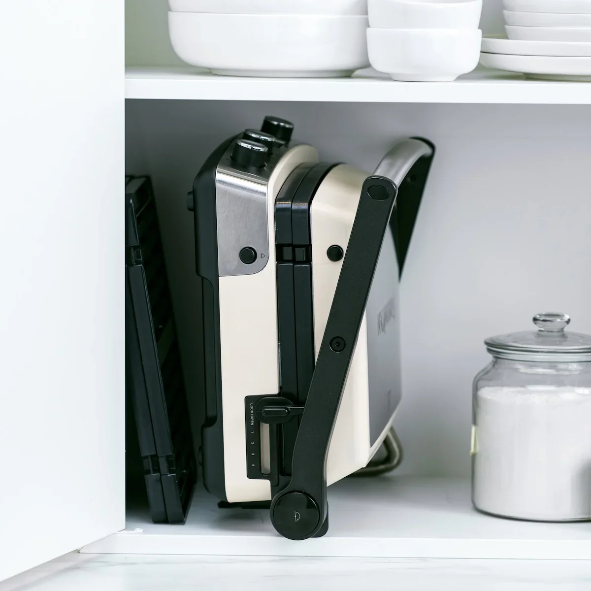Met de GreenPan Electricals Contactgrill Crème maak je in korte tijd de lekkerste panini’s, tosti’s, gegrilde groenten of sappige hamburgers. Dankzij het sterke vermogen van 2200 watt warmt de grill razendsnel op en is hij direct klaar voor gebruik. Je kunt hem gesloten gebruiken als contactgrill of volledig openklappen om samen te genieten van een gourmet- of teppanyakimaaltijd. De uitneembare grillplaten zijn voorzien van de PFAS-vrije Thermolon Volt antiaanbaklaag, waardoor je gezonder kookt en de platen makkelijk schoon te maken zijn.