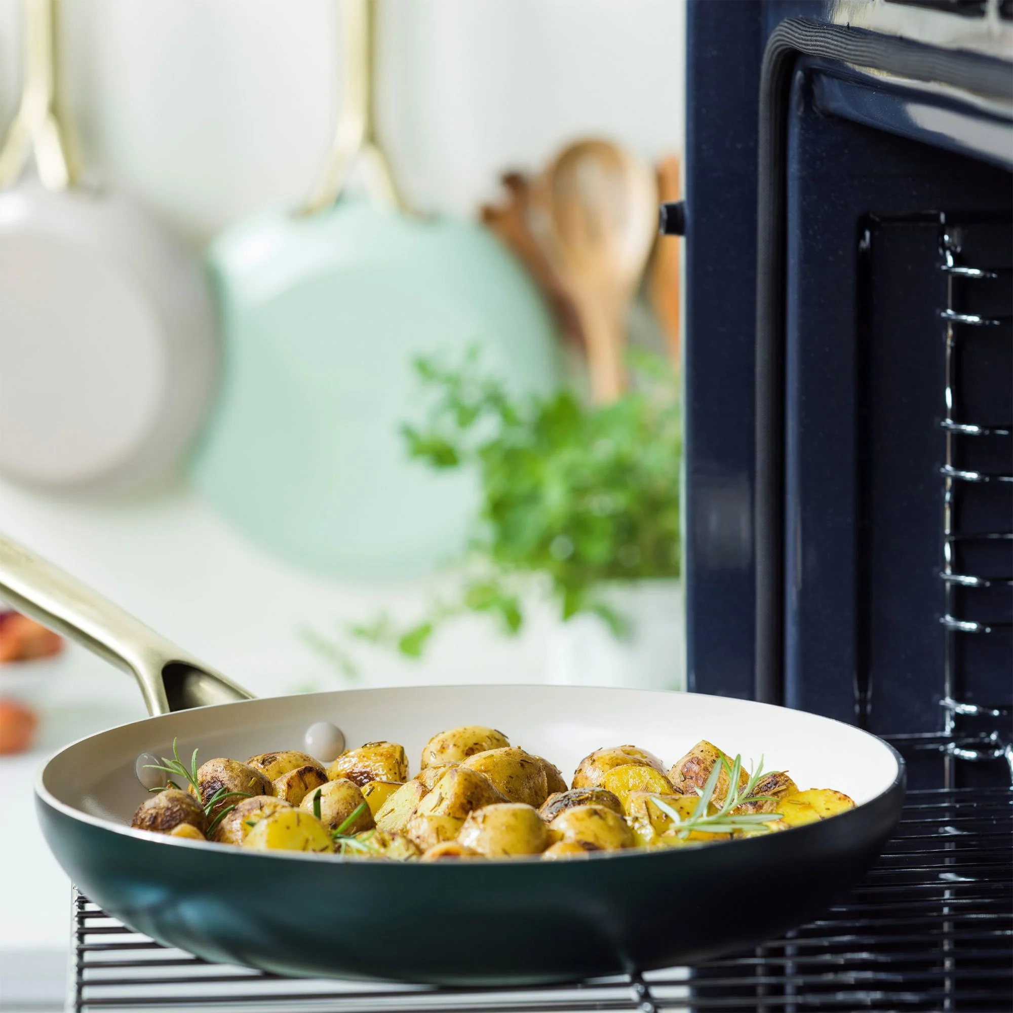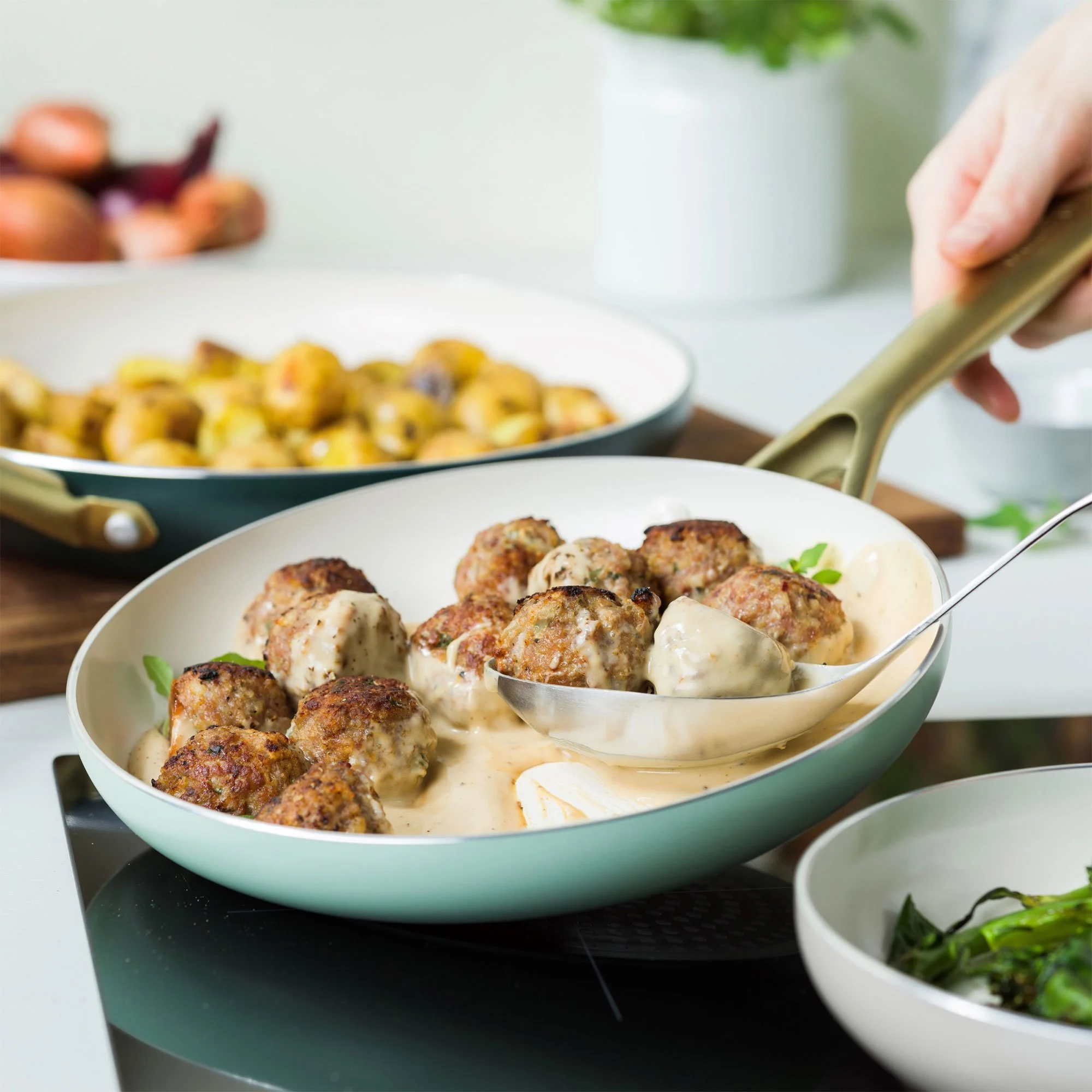 De pannen zijn uitgerust met Greenpan’s unieke Thermolon™ keramische antikleeflaag, waardoor ingrediënten niet blijven plakken en je gerechten gemakkelijk kunt bereiden en serveren. Deze laag is krasbestendig en eenvoudig te reinigen, en de pannen zijn bovendien vaatwasmachinebestendig – een ideale uitkomst voor een drukke levensstijl. De inductiebodem zorgt voor een optimale en gelijkmatige warmteverdeling, zodat elk gerecht op de juiste temperatuur wordt bereid.
