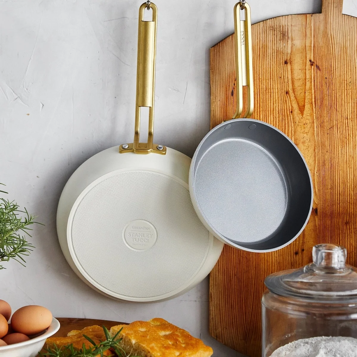 Met de GreenPan Stanley Tucci pannenset haal je twee stijlvolle koekenpannen in huis die design en prestaties moeiteloos combineren. De set bestaat uit een pan van 20 cm en 26 cm en is uitgevoerd in een elegante witte kleur die direct een luxe uitstraling geeft aan je keuken. Dankzij het gebruik van minimaal 70% gerecycled aluminium is deze pannenset bovendien een bewuste keuze voor wie duurzaam wil koken zonder in te leveren op kwaliteit of comfort.