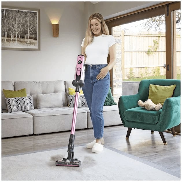 Ontmoet de Nummatic HEN100r Roze Draadloze Stofzuiger, jouw partner in schone, frisse ruimtes! Met een ergonomische grip voor ultiem comfort en een verlengde handgreep die zelfs lange mensen zullen waarderen, wordt stofzuigen een moeiteloze ervaring.