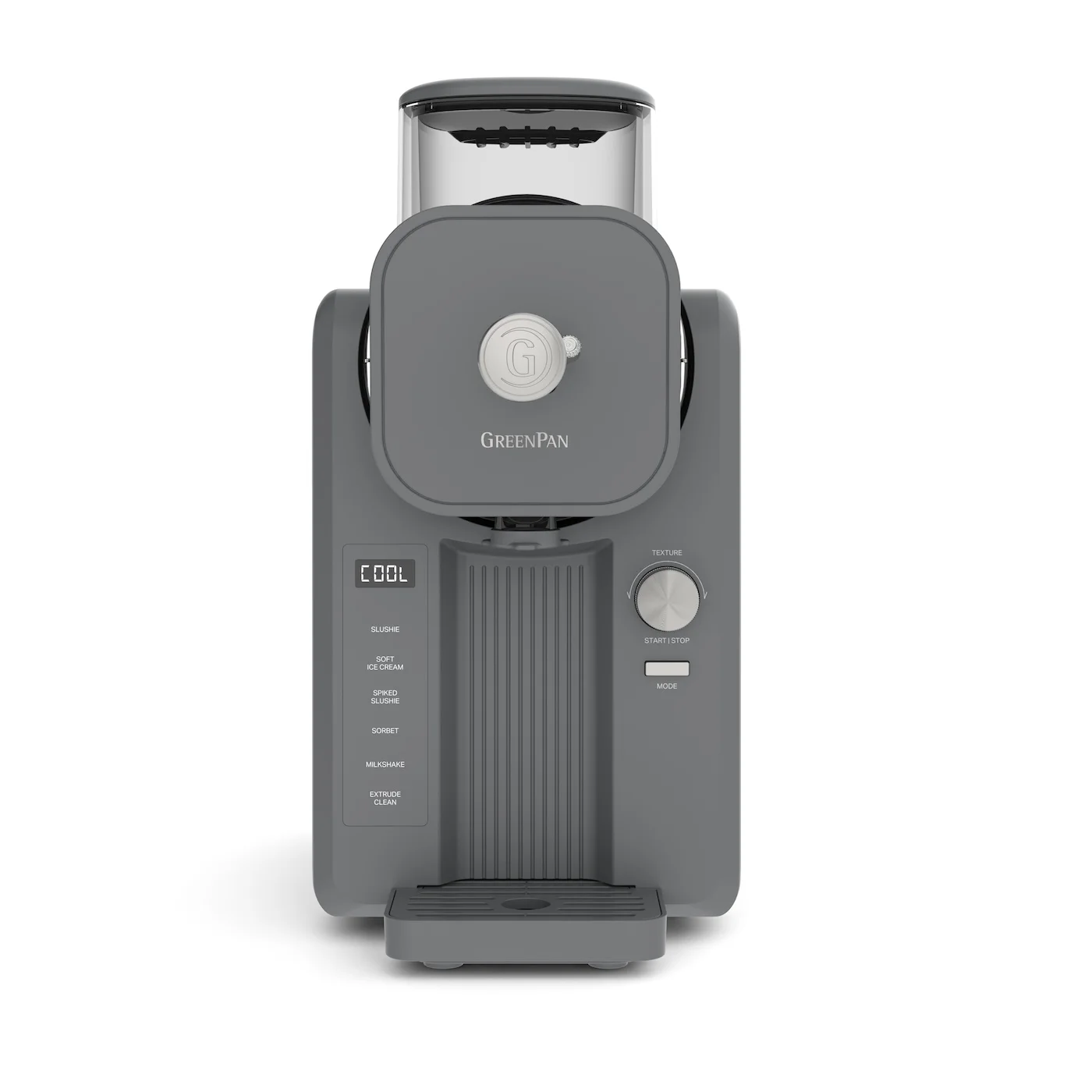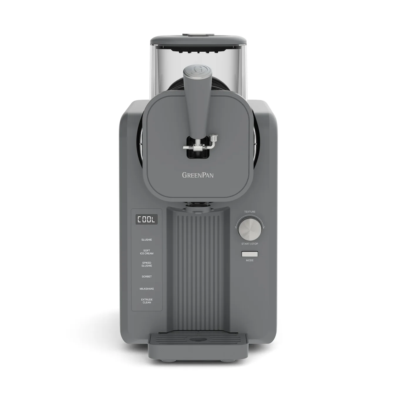 De GreenPan Ice Cream Maker Grey 1,87 liter maakt thuis ijs en koele drankjes eenvoudig en snel. In drie stappen heb je resultaat: voeg je ingrediënten toe, kies de juiste stand en geniet in ongeveer dertig minuten van je traktatie. De stille compressor bevriest direct, dus je hebt geen vriezer of extra bakjes nodig. Met zes handige programma’s kies je precies wat je wilt maken, zoals softijs, sorbet, milkshake, slushy en zelfs een schoonmaakstand. Zeven textuurinstellingen geven je controle van zacht en romig tot stevig en dik. De dubbele isolatie houdt alles urenlang koel, voorkomt condens en zorgt voor een constante structuur. De doorzichtige kom laat je zien hoe ver je bent en met de klassieke taphendel schenk je uit zoals in je favoriete ijssalon.