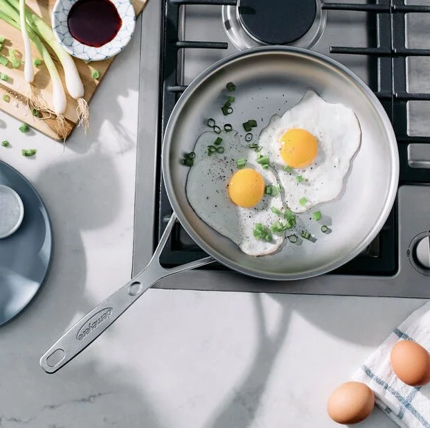 De Demeyere Industry 5 koekenpan van 20 cm met NanoTouch-technologie maakt bakken met roestvrij staal eenvoudig en plezierig. Dankzij het 5-lagenmateriaal geniet je van een snelle en gelijkmatige warmteverdeling, wat zorgt voor perfecte bakresultaten. De NanoTouch-afwerking verdeelt vetstoffen optimaal, zodat je zelfs met weinig olie of boter knapperig en smaakvol kookt. Vlees, vis en groenten bakken daardoor vol smaak en met een mooie korst. De pan is krasbestendig, volledig PFAS-vrij en behoudt zijn glans dankzij de Silvinox-behandeling.