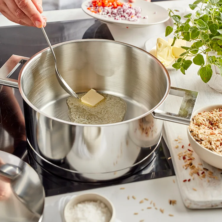 Het dubbelwandig deksel sluit optimaal aan en heeft een extra isolerend effect. Zo verlies je geen warmte en kook je met weinig vocht voor een heerlijk resultaat in minder tijd. De handige gietrand voorkomt morsen. De gegoten, gelaste roestvrijstalen grepen liggen stevig in de hand en blijven hygiënisch. De Silvinox technologie voorkomt verkleuring en houdt de glans mooi, zodat je de pan na gebruik moeiteloos schoon krijgt. Geschikt voor alle kookplaten en voor de oven. Na het koken kan alles in de vaatwasser. Ontwikkeld en vervaardigd in België en voorzien van 30 jaar garantie op productiefouten bij huishoudelijk gebruik. De John Pawson 7 is een duurzame meerwaarde voor je interieur en je kookplezier.
