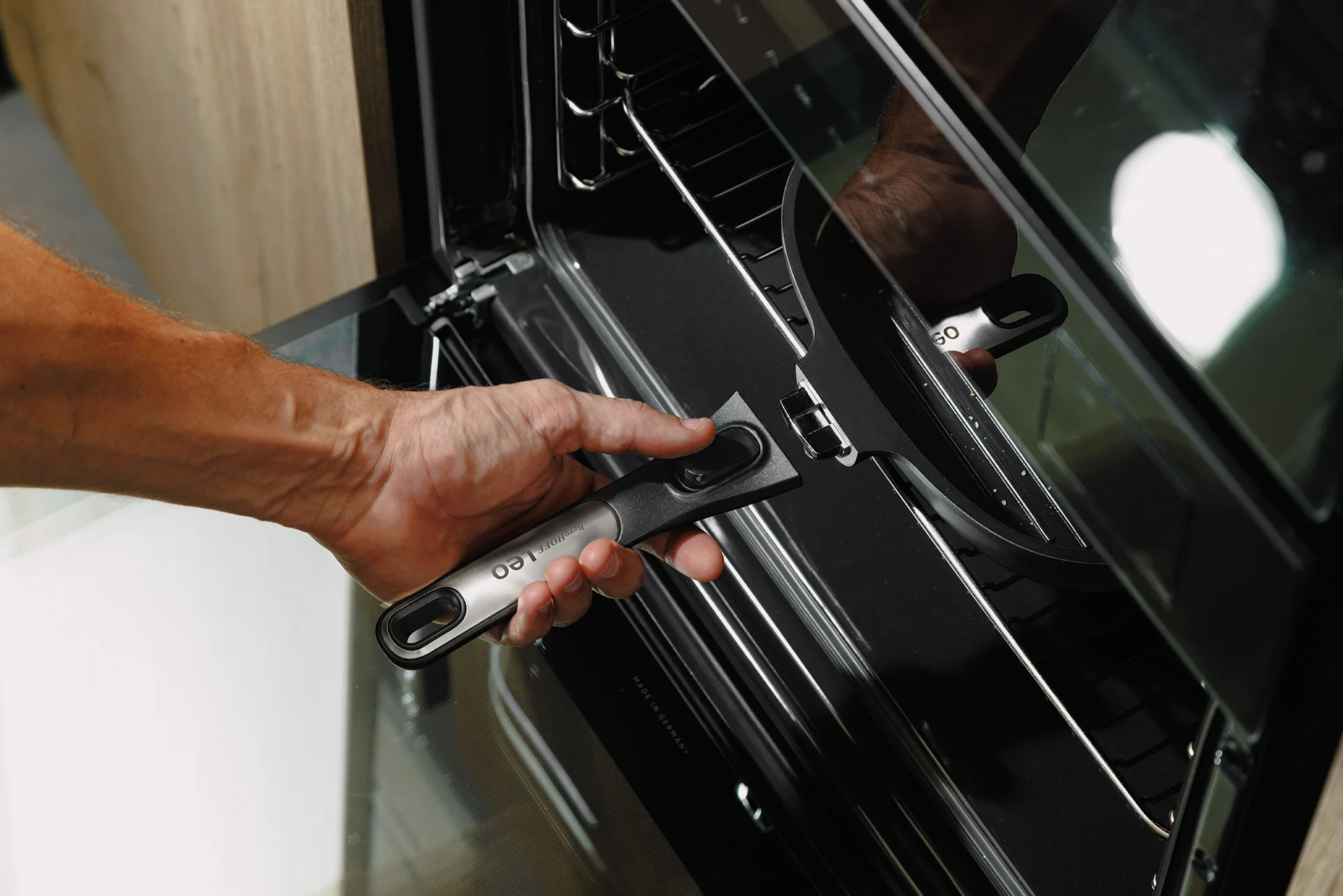De BergHOFF Leo Phantom Pannenset 10-delig Downdraft is een complete en milieubewuste pannenset voor dagelijks gebruik. De pannen zijn gemaakt van gerecycleerd aluminium en hebben een CeraGreen keramische antiaanbaklaag die volledig PFAS-vrij is. Hierdoor kook je op een gezonde en verantwoorde manier. Dankzij de naadloze constructie zijn de pannen eenvoudig schoon te houden en extra hygiënisch in gebruik. Ze zijn ovenbestendig tot 230°C, waardoor je gemakkelijk van kookplaat naar oven kunt schakelen. De afneembare siliconen handvaten zorgen voor een veilige grip tijdens het koken en zijn eenvoudig te verwijderen wanneer je de pan in de oven plaatst.