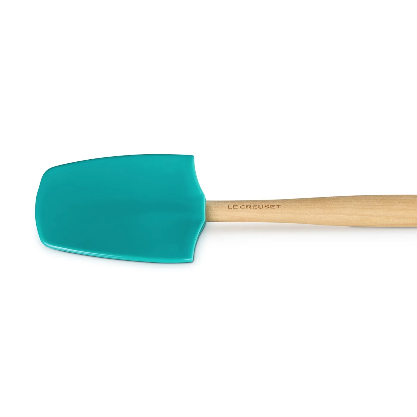 De Le Creuset Lepelspatel Groot in de stijlvolle kleur Blue Riviera is een onmisbare hulp in de keuken. Dankzij het flexibele siliconen design is hij ideaal voor roeren, mengen en scheppen, zonder je pannen te beschadigen. Volledig BPA-vrij en bestand tegen hoge temperaturen, waardoor hij veilig en duurzaam in gebruik is. Bovendien is deze spatel vaatwasmachinebestendig, waardoor schoonmaken moeiteloos gaat. Perfect voor elke kookliefhebber die stijl en functionaliteit wil combineren!