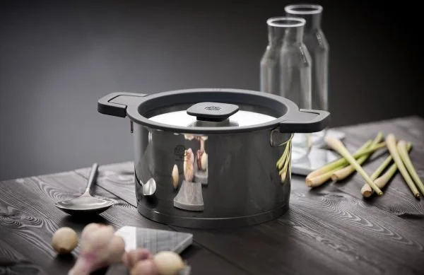 Wat deze kookpan bijzonder maakt, is het slimme en praktische ontwerp. Het platte glazen deksel is hittebestendig, breukvast en heeft een siliconen rand voor een perfecte afsluiting. Je kunt het deksel ophangen aan het handvat of zelfs gebruiken als onderzetter. Er zitten geen losse onderdelen onder het deksel, wat zorgt voor een hygiënische en eenvoudige reiniging. De dekselknop is van siliconen en blijft koel tijdens het koken. Bovendien zijn de handgrepen zo ontworpen dat het deksel er netjes op past wanneer je het even wilt neerleggen of stomen. De Max Kookpan is stapelbaar met andere pannen uit de serie, wat handig is om ruimte te besparen in je keukenkastjes. Deze pan is ook ideaal voor gebruik met kookplaten met geïntegreerde afzuiging, omdat het stoom netjes geleid wordt. Een slimme keuze voor wie comfort en kwaliteit zoekt in een compacte kookpan.