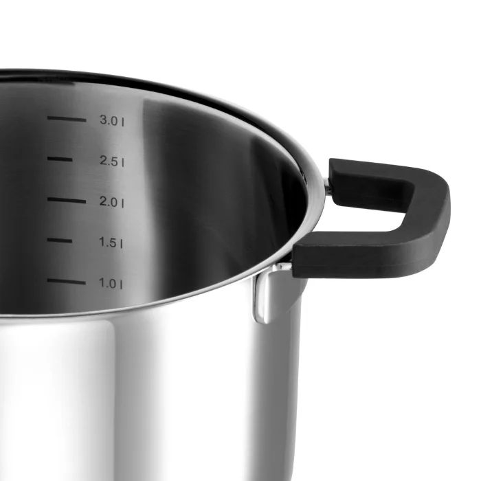 De Schulte-Ufer Max Kookpan 16 cm uit de Maxa-collectie van Barski Design is een compacte maar veelzijdige pan voor dagelijks gebruik. Met een inhoud van 2 liter is deze kookpan ideaal voor kleine gerechten of bijgerechten. De pan is gemaakt van hoogwaardig 18/10 roestvrij staal en heeft een energiebesparende ecotherm® bodem die geschikt is voor alle warmtebronnen, inclusief inductie en glaskeramiek. De aluminium capsulebodem zorgt voor een gelijkmatige warmteverdeling, waardoor koken sneller en efficiënter gaat. De pan is vaatwasserbestendig en daardoor makkelijk schoon te maken. Dankzij de interne maataanduiding kun je nauwkeurig afmeten zonder extra maatbekers.