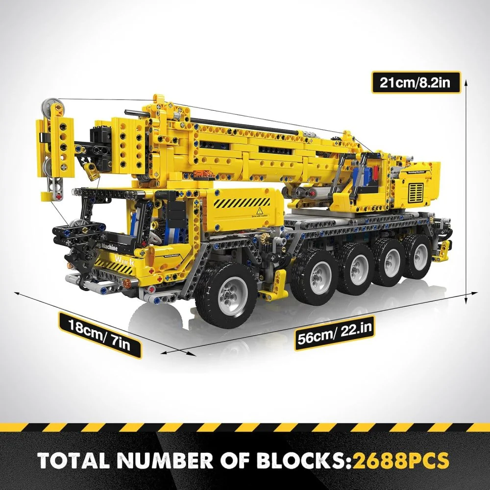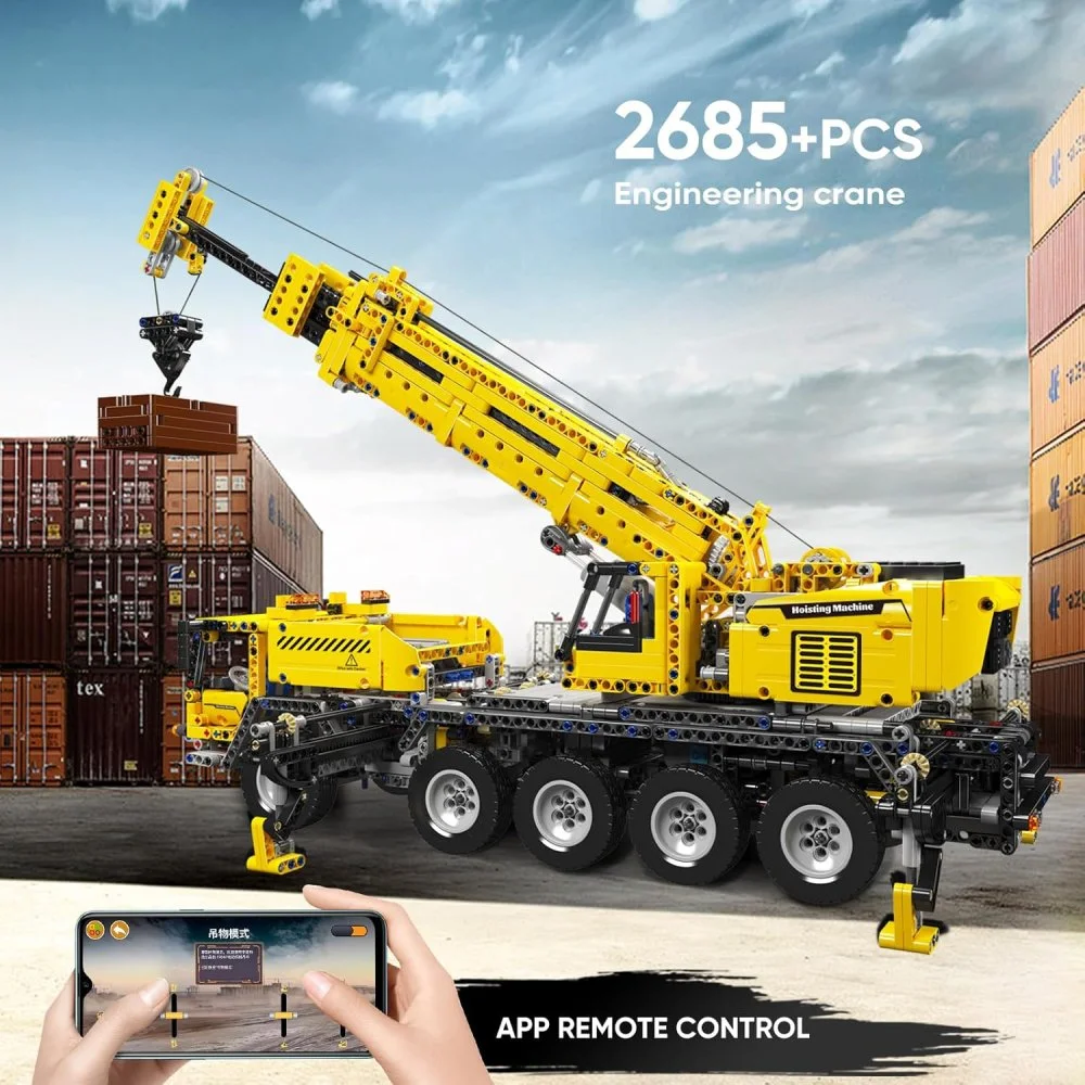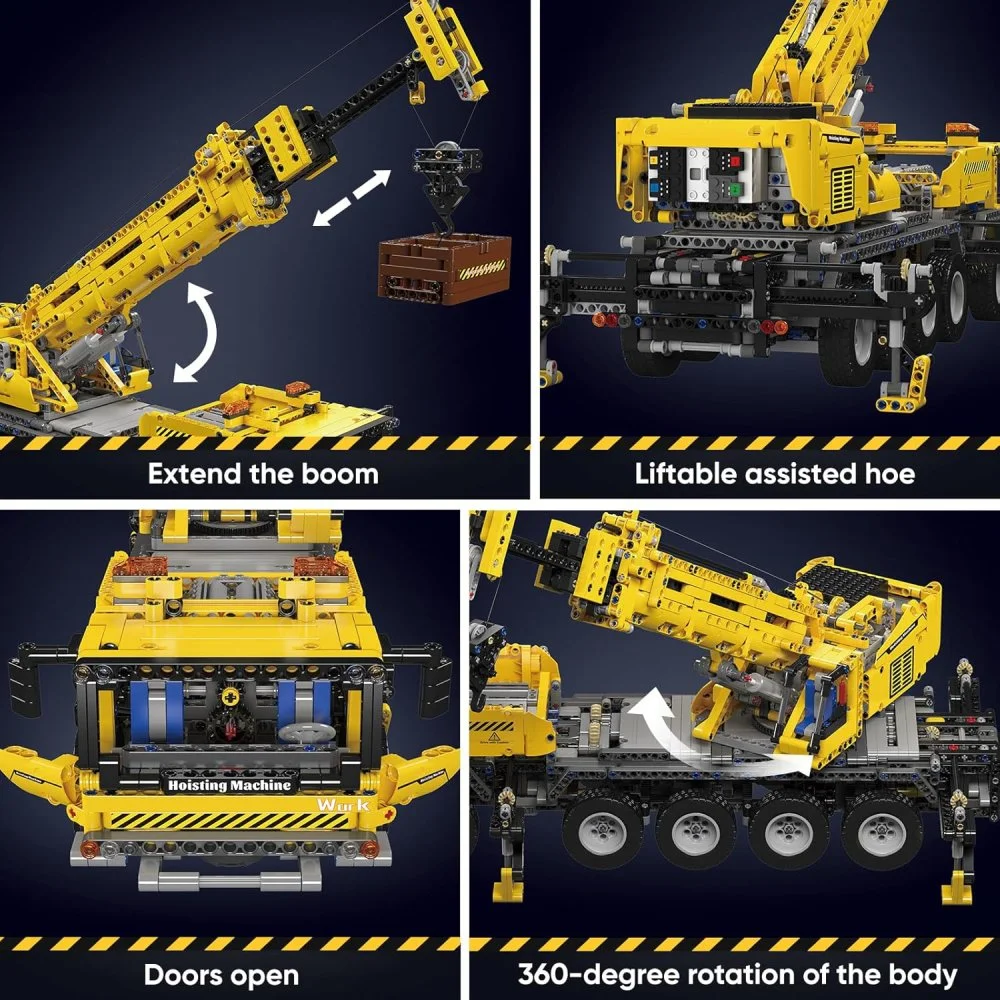 Deze mobiele kraan is uitgerust met talloze functies die hem tot leven brengen. Hij beschikt over 10-wielbesturing, een 360° draaibare bovenwagen, een uitschuifbare 3-delige giek, op- en neergaande stabilisatorpoten en een metalen gewichtsmodule voor extra realisme. De haak en giek zijn afzonderlijk te heffen en te laten zakken, zodat je net als op een echte bouwplaats kunt werken. Dankzij de hoogwaardige onderdelen, waaronder meerdere HALL-motoren en twee MK4 oplaadbare accu’s, is het model duurzaam en krachtig in gebruik. De metalen kraanhaak en stevige constructie maken het geheel extra robuust. De meegeleverde bouwinstructies zorgen ervoor dat je het model stap voor stap kunt opbouwen, waardoor het geschikt is voor zowel soloprojecten als gezamenlijke bouwsessies met familie of vrienden. De Mould King Mechanische Kraan is ideaal voor iedereen die houdt van techniek, precisie en grootschalige bouwprojecten, en vormt na voltooiing een indrukwekkend pronkstuk voor in huis.