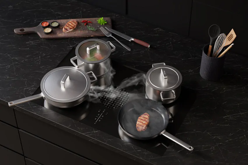 De KOQI Mira Koekenpannenset met wok is ideaal voor iedereen die graag luxe en gemak in de keuken wil. De pannen zijn gemaakt van hoogwaardig 18/10 roestvrij staal en hebben een gelast handvat voor extra stevigheid en veiligheid. Dankzij het 3 ply materiaal warmen de pannen snel en gelijkmatig op, waardoor je energiezuinig kookt. De set is geschikt voor alle warmtebronnen, ook inductie, en werkt perfect samen met een downdraft systeem. Zo blijven kookdampen beter onder controle en kook je comfortabeler.