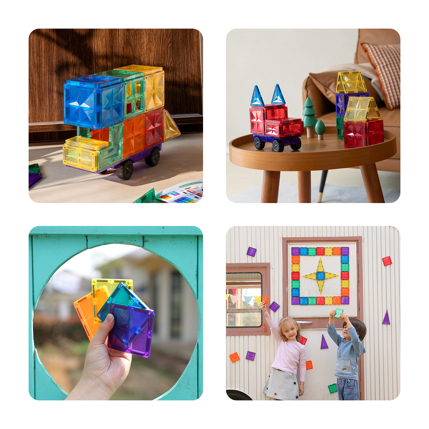 - Magnetisch Speelgoed: Elke tegel is voorzien van sterke magneten, wat zorgt voor stevige en stabiele constructies.