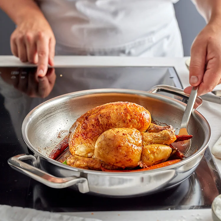 De Demeyere Multifunction 7 koekenpan met een diameter van 32 cm is ideaal voor grotere porties en uitgebreide maaltijden. Dankzij de royale bakoppervlakte kun je meerdere ingrediënten tegelijk bakken, zonder dat ze tegen elkaar aan liggen. De pan is gemaakt van duurzaam roestvrij staal en heeft een bodemdiameter van 26 cm, wat zorgt voor een snelle en gelijkmatige warmteverdeling. Of je nu vlees, groenten of vis wilt bereiden, deze pan levert betrouwbare resultaten. Het handvat is gemaakt van gegoten en gelast roestvrij staal, wat niet alleen stevig en duurzaam is, maar ook extra hygiënisch. Het blijft koel tijdens het koken, zodat je comfortabel en veilig kunt werken.
