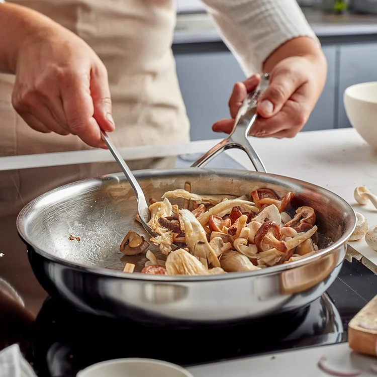 Met Multiline 7 ga je aan de slag als een volleerde chef. Het is een solide roestvrijstalen pan uit ons topsegment, maar lichter in gewicht dan Proline 7. De Multine 7 koekenpan is volledig vervaardigd uit ons exclusieve 7-lagenmateriaal. Hierdoor verdeelt de warmte zich heel snel en gelijkmatig. Dorade, vegetarische aperitiefballetjes, kalkoenfilets, ... je bakt ze stuk voor stuk zoals het hoort. Als basis voor een passende saus kan je de kleine aanbaksels deglaceren. Ook aardappeltjes geef je in een-twee-drie een heerlijk krokant jasje. Als je dat wenst – uit gezondheids- of andere overwegingen – kan je zelfs vlees bakken zonder olie of boter toe te voegen. Deze pan van 20 cm ligt goed in de hand, presteert geweldig op alle fornuizen en is niet te kloppen op inductie. Door de exclusieve TriplInduc® technologie kook je met Multiline 7 op inductie efficiënter en met een optimale controle over de temperatuur. Zo bespaar je hier tot 30% energie. Zodra de pan voldoende opgewarmd is, mag het fornuis een paar standen lager, ze houdt de juiste baktemperatuur. Sauzen en vloeistoffen giet je makkelijk over zonder morsen, daar zorgt de speciale schenkrand voor. Durf je al eens met mes en vork in een pan zitten? Geen stress, deze robuuste hulp kan er tegen. Dankzij onze unieke lastechnologie is de steel extra stevig bevestigd en uiterst hygiënisch. Deze Multiline 7 pan reinigt als vanzelf en blijft blinken, dankzij de Silvinox® technologie. Ze kan ook probleemloos de vaatwasser in. Goed voor blijvend bakplezier. Multiline 7 assisteert je tiptop, jaar na jaar.