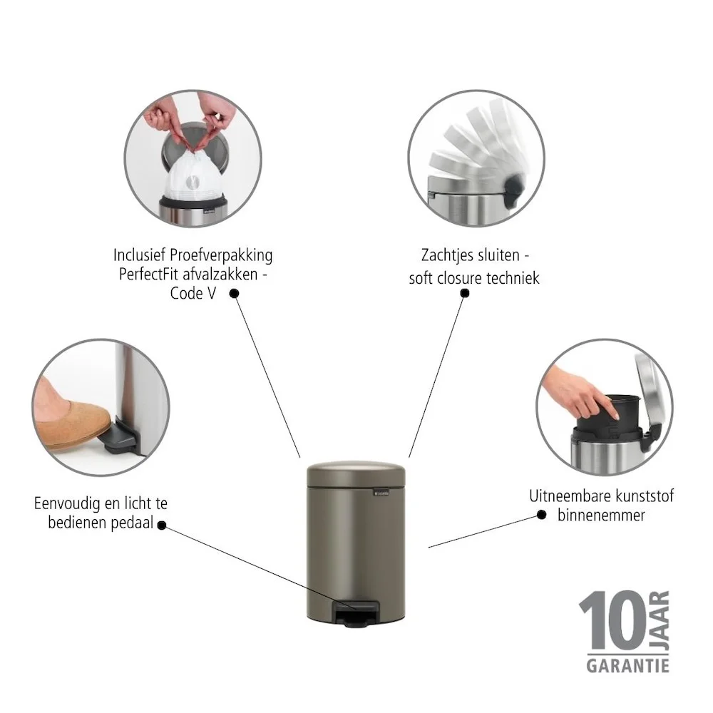 Brabantia NewIcon pedaalemmer 3 ltr Platinum