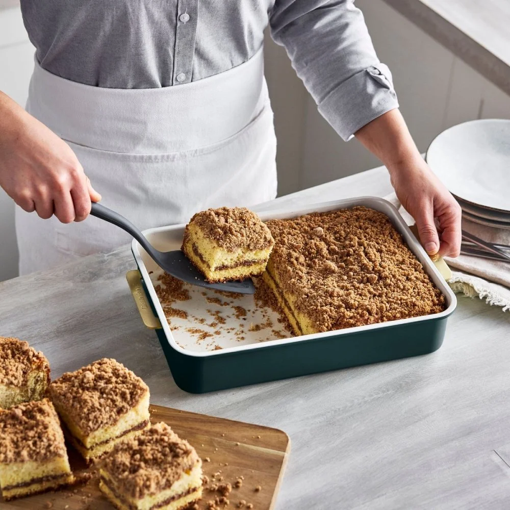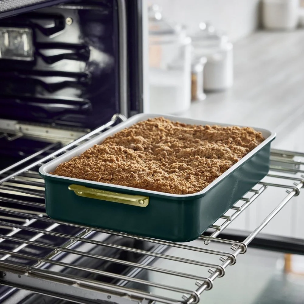 De keramische PFAS-vrije antiaanbaklaag zorgt ervoor dat je baksels moeiteloos loskomen, zonder te scheuren of te kruimelen. Geen gedoe meer met aangekoekte resten: een zachte handwas is voldoende om de vormen weer stralend schoon te krijgen. De set bevat bovendien een stevig afkoelrek met dikke draden, waarmee je gebakken creaties snel en gelijkmatig kunt laten afkoelen. De prachtige Pine Green kleur en het verfijnde ontwerp maken deze collectie niet alleen functioneel, maar ook een echte blikvanger op je aanrecht. Met de GreenPan Padova Bakeware-set maak je van elk bakmoment een plezier en til je jouw bakcreaties naar een hoger niveau – stijlvol, gezond en zonder compromissen.