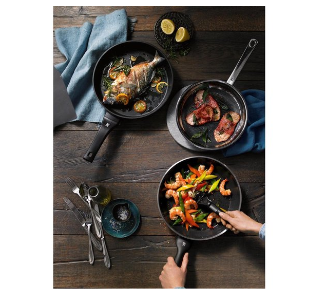 De WMF PermaDur Premium pannenserie is een collectie die zowel gericht is op een fraaie vormgeving als op hele hoge functie eisen. De pannen laten niets te wensen over. Of het nu gaat om bakken, braden, grillen of sudderen elke bereiding is gemakklijk met de PermaDur Premium coating. Door het speciale gietproces behouden de pannen hun permanente vorm van stabiliteit en het gegoten materiaal zorgt voor een optimale warmtegeleiding en warmte opslag, zo kunt u op elk gewenst moment genieten van uw diner. De pannen hebben een ergonomische steel met vlamvertragers. Alle pannen uit de collectie zij uitgerust met de antiaanbaklaag PermaDur dat maakt deze pannen slijtvast en duurzaam.