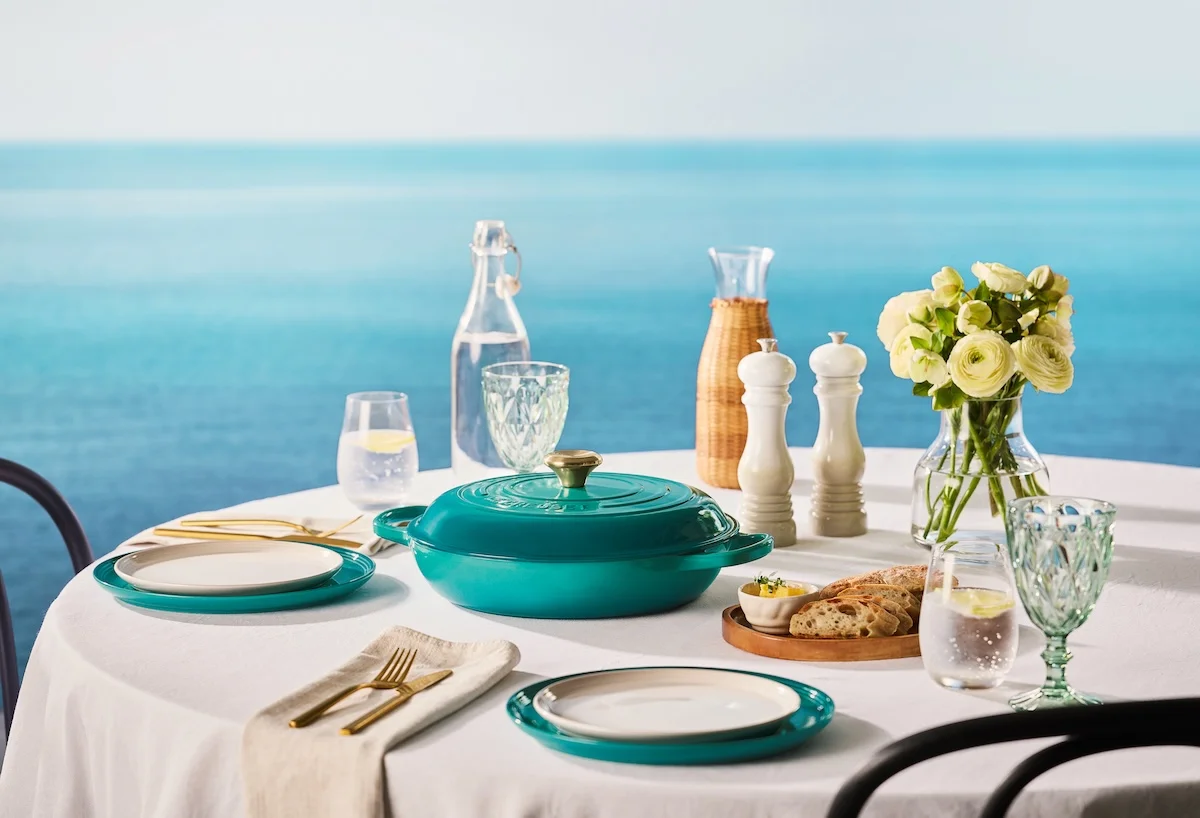En dan de kleur: Bleu Riviera brengt een mediterrane getaway naar uw keuken. Glanzende blauw/groene tinten die als zeegolven in elkaar overlopen, geven een luchtig, uitbundig en verfrissend gevoel—alsof uw interieur direct “op vakantie” gaat. Of u ‘m combineert met stijlvolle neutrale tinten of juist met uitgesproken kleuren: deze Campagnard voegt meteen karakter toe. Uiteraard is hij geschikt voor alle warmtebronnen (ook inductie), kan hij in de oven en is hij gemaakt in Frankrijk met levenslange garantie.