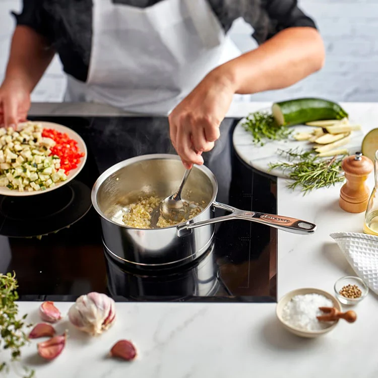 De bodem van de pan is voorzien van een InductoSeal® laag met een kern van koper, wat zorgt voor een uitzonderlijke warmtegeleiding. Hierdoor wordt de warmte gelijkmatig verdeeld, ongeacht het type kookplaat dat je gebruikt – gas, elektrisch of inductie. De gietrand van de pan maakt het uitschenken gemakkelijk en zonder te morsen. Daarnaast zijn de handgrepen gemaakt van stevig roestvrij staal en stevig vastgelast, wat extra hygiëne biedt. Ze blijven koel tijdens het koken en liggen prettig in de hand. De pan is naadloos afgewerkt, waardoor er geen etensresten achterblijven en je hem makkelijk schoonmaakt. Met zijn combinatie van slimme technologie, duurzaamheid en gebruiksgemak is deze steelpan een onmisbare hulp in de keuken.