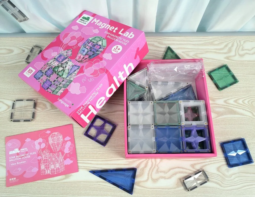 Laat de fantasie van je kind tot leven komen met het MNTL Ster Magnetische Tegel Ballon Huis! Deze kleurrijke 101-delige set nodigt kinderen uit om eindeloos te bouwen, ontdekken en leren. Of ze nu een sprookjesachtig ballonnenhuis, een hoge toren of een creatief kasteel willen maken, met de sterke magneten blijven hun bouwwerken stevig staan. De tegels hebben een uniek 16-punts sterontwerp dat niet alleen prachtig oogt, maar ook krasbestendig is – perfect voor dagelijks speelplezier.