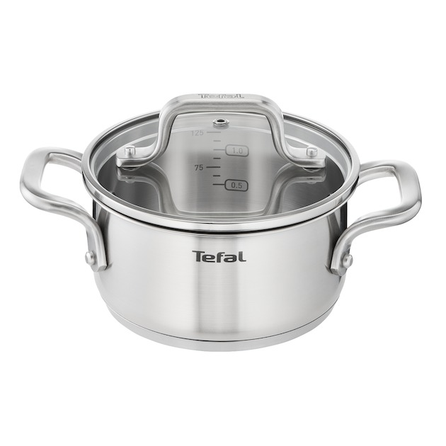 Met het Tefal Virtuoso 5-delige pannenset haal je een goede basis in huis voor veel gerechten. Dankzij het hoogwaardige 18/10 roestvrij staal en het robuuste design gaan de pannen ook zeer lang mee. Dat is ook precies de reden waarom deze pan met 10 jaar garantie wordt geleverd. Stevige, geklonken roestvrijstalen handvatten zorgen voor een heel nieuw niveau van stabiliteit onder het koken, zodat je vol vertrouwen in de keuken kan staan. De glazen deksel en duidelijk zichtbare maatverdeling maken deze pannenset makkelijk in gebruik.