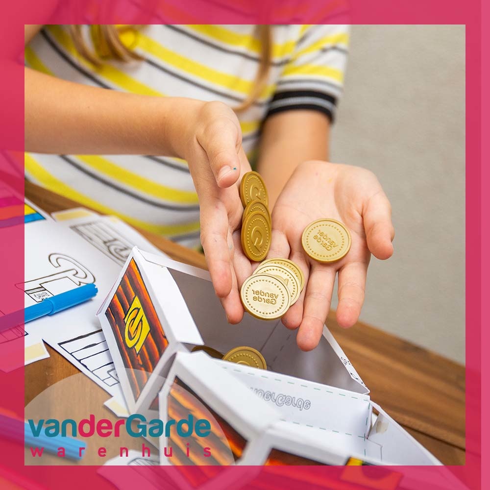 Wij hebben daarvoor de Van der Garde Goudstukken bedacht en ontwikkeld. Deze zijn te koop in onze winkel. De Van der Garde Goudstukken zijn per stuk te koop. Dus stel; je wilt een kind een cadeau van 10 euro geven? Koop dan 10 munten, deze doen wij in een handige verpakking en pakken wij als cadeautje in. Elk kind kan daarmee kopen wat het zelf wil of lekker verder sparen voor een grote cadeau!